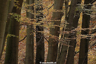 Vanmiddag nog even de herfstlucht opgesnoven op de Hoge Veluwe. Ik had gehoopt dat het zonnetje er nog even bij kwam, maar dat gebeurde helaas niet. Onderweg kwam ik een andere fotograaf tegen. Voorbijgaande fietsers riepen hem toe: ‘Is er iets moois te zien?’, waarop de fotograaf stoïcijns antwoordde: ‘Ja, de hele tijd’. Het is wel komisch hoeveel mensen direct denken dat er een zwijn of een hert voor je camera zit, als je de beuken mooi probeert vast te leggen.