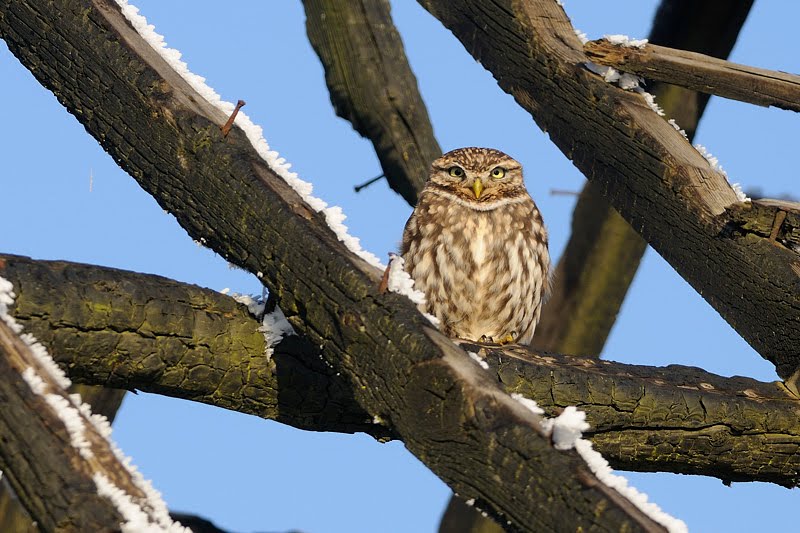 O ja, in het boek is een foto van mij opgenomen van een steenuil die zit te zonnen in een half afgebrand huis.