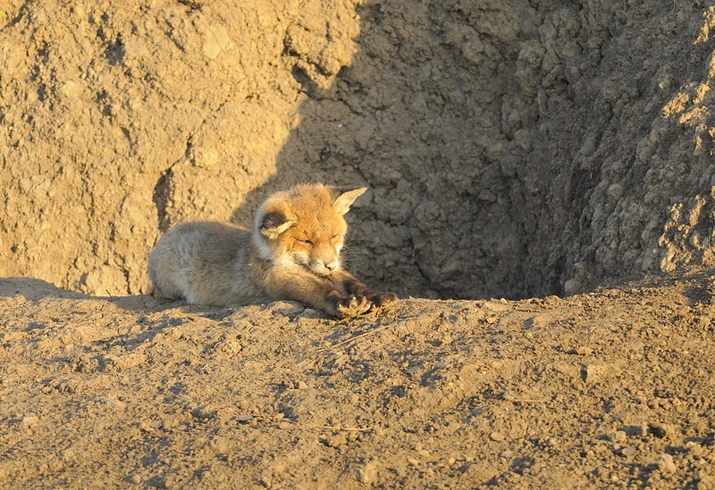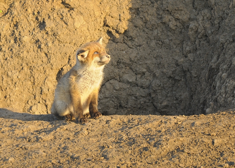 Ze zijn bovendien bijzonder nieuwsgierig en reageren op alles wat er over vliegt of een geluidje maakt. Deze vosjes kon ik vastleggen bij een hol in het rivierengebied. Het voordeel van dit hol is dat de vosjes mooi vrij zitten en er meestal genoeg licht. Een beetje teveel zelfs soms, zoals deze morgen toen de zon opkwam.
