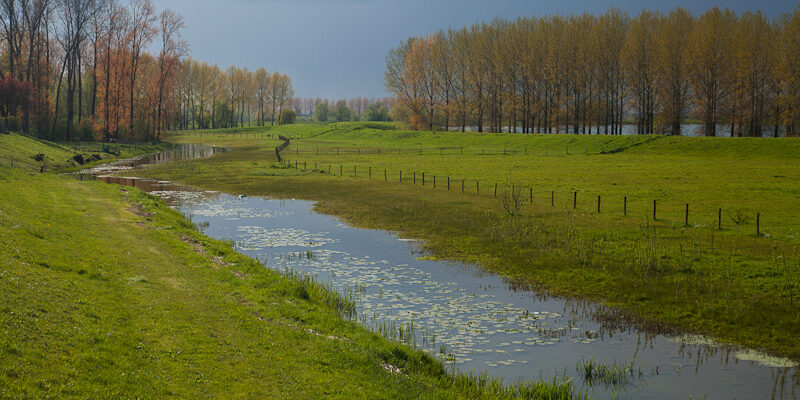 In deze weken tijdens het voorjaar gebeurt er veel tegelijk buiten. Je zou er een beetje gestresst van raken als natuurfotograaf. De bloesem loopt uit. De bomen krijgen hun blad, de vogels zijn op hum mooist en gaan baltsen en ook de zoogdieren, zoals vossen krijgen kleintjes. En daar kun je natuurlijk niet allemaal tegelijkertijd bij zijn. Je moet dus keuzes maken. Mede door het 'mooie' wisselvallige weer waren er veel kansen voor het maken van landschapsfoto's. Daar ben ik de laatste weken een paar keer mee bezig geweest. En dan met name in het rivierenlandschap. De populieren liepen dit jaar erg mooi uit. Ik heb dit geprobeerd vast te leggen door gebruik te maken van een beetje tegenlicht. De kleuren waren mooi verzadigd na een regenbui en een polarisatiefilter hielp ook nog een beetje. De foto is gemaakt bij het dorp Opheusden, en laat ook mooi de zomer- en winterdijk zien.