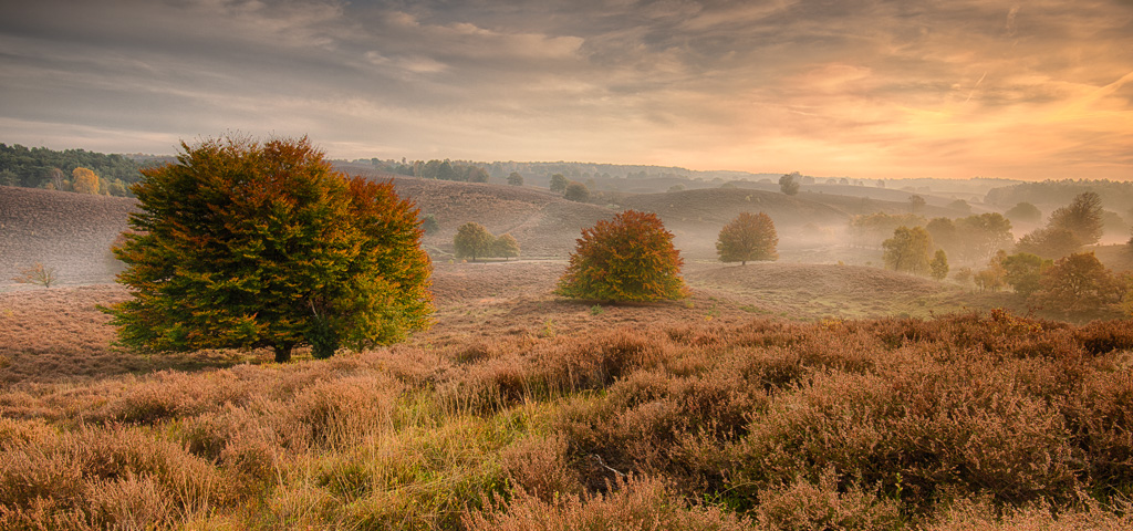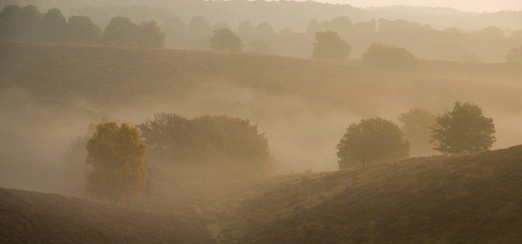 Voor fotografen is de herfst een heerlijk seizoen. Je hoeft niet al te vroeg op om te genieten van de kleuren, de vergankelijkheid en de nevel die vaak blijft hangen. Deze morgen op de Posbank geweest. Door de hoogteverschillen en de mooie vrijstaande bomen kun je daar de herfst op een andere manier vastleggen.