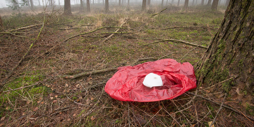 Daarnaast viel mijn oog op een kleur die je normaal niet vindt in een winters bos. Een rode lap? Toen ik dichterbij kwam bleek het een afgedwaalde wensballon te zijn. Toch jammer dat veel ballonnen in de vrije natuur terecht komen. Mijn wens is dan ook (naast de beste wensen) dat deze ballonnen in het vervolg virtueel worden afgestoken…