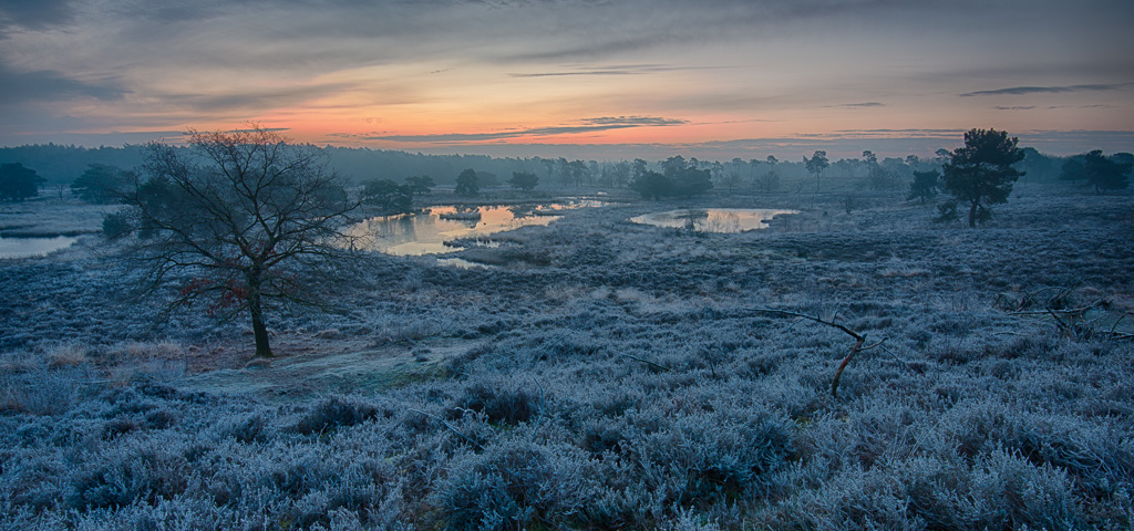 Vanmorgen in de Maasduinen geweest, een heide- en vennengebied in Limburg ten oosten van de Maas. Het was koud en een beetje mistig. Mooie omstandigheden voor landschapsfoto’s. Nadat ik begonnen was bij een paar vennen, ben ik doorgelopen naar de uitkijktoren die daar op een heuvel staat. Dit levert een net iets ander perpectief op. Een beetje een drone perpectief. Vast een beetje wennen, want ik heb toch weer een drone aangeschaft…
