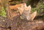 Deze rosse woelmuis heeft een hoge aaibaarheidsfactor. Ze zitten regelmatig bij de boshut om een graantje mee te pikken. Op de foto zetten valt niet mee, want ze zijn razend rap. Deze had een vast uitkijkpunt gevonden en tilde dan ook nog even het pootje op. Wat wil je nog meer?