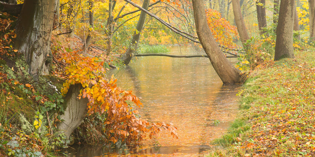 Vandaag even het bos bij Doorwerth in geweest. In de regen en gewapend met een paraplu. Een beetje prutsen om de camera en lens droog te houden, maar het voordeel van een nat bos is dat de kleuren mooi verzadigd overkomen. Dit effect kun je nog versterken door een polarisatiefilter te gebruiken. De sluitertijden schieten dan wel omhoog; regelmatig stond ik een seconde of 10 te wachten. Maar goed, landschappen lopen niet weg en het statief blijft ook wel staan.