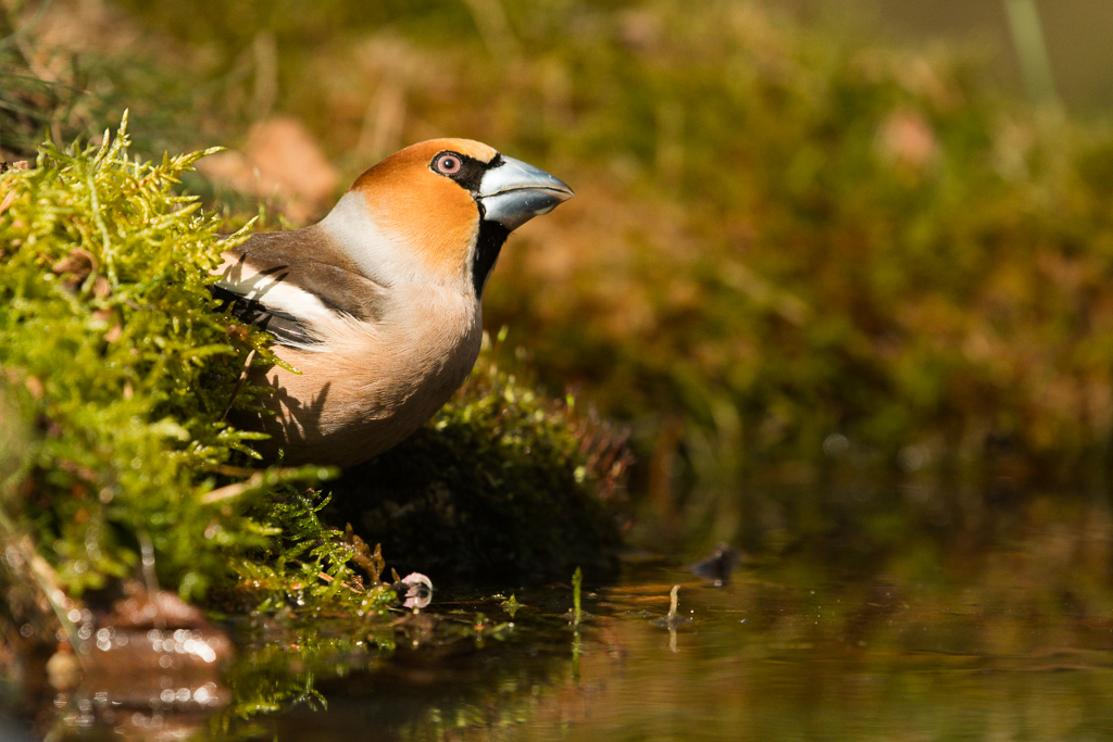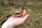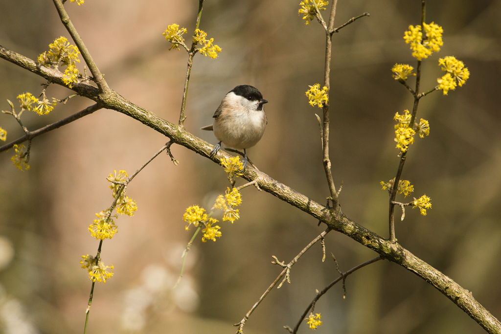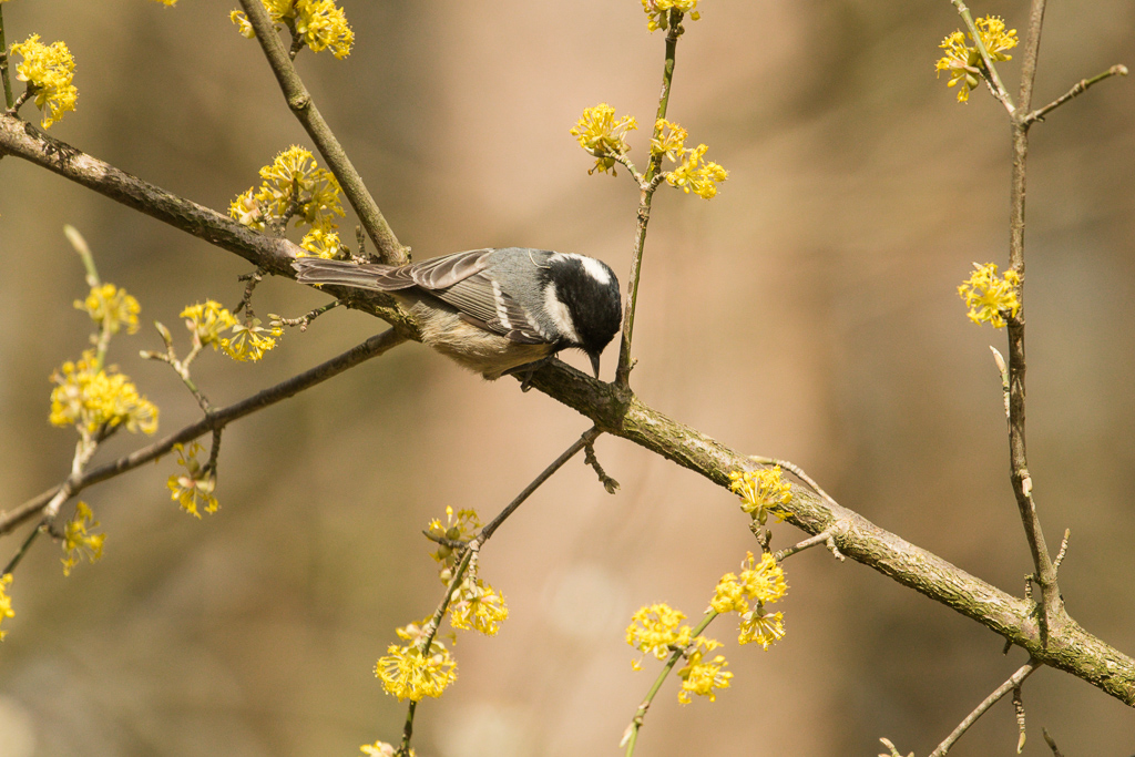 In het voorjaar is het meestal extra leuk bij de boshut. Naast de vaste gasten kun je wat meer doortrekkers aantreffen. Daarnaast experimenteer ik vaak wat met bloesem voor een extra toefje voorjaarsgevoel in de foto. Vrijdag was het lekker weer en de vogels genoten van het voer en ons nieuw aangelegde vijvertje. Er zaten veel soorten vinken (vink, groenling, keep en appelvink) en ook kwam een zwarte mees en de grote bonte specht even langs. Toen ik al bijna weg wilde gaan schrokken de vogels ineens en vlogen ze op. Een keep vloog tegen het raam tot schrik van de keep en van de fotograaf achter het raam. Een vogel die tegen het raam aan vliegt gebeurt gelukkig maar heel soms. De keep lag versuft voor de hut op de rug en maakte rare bewegingen. Even was ik bang dat hij het loodje zou leggen, maar hij bleef op de rug liggen en ademde nog. Ik ging naar buiten om te kijken of ik nog iets kon doen. Ik probeerde de vogel een beetje bij de laten komen met wat water. Hij werd steeds levendiger en leek het te gaan redden. Ik zette de keep op mijn hand voor een fotootje en vlak daarna vloog hij richting een boom. Die ging het wel redden. Lang leve de keep en ik hoefde me gelukkig niet schuldig te voelen over de dood van een keep.