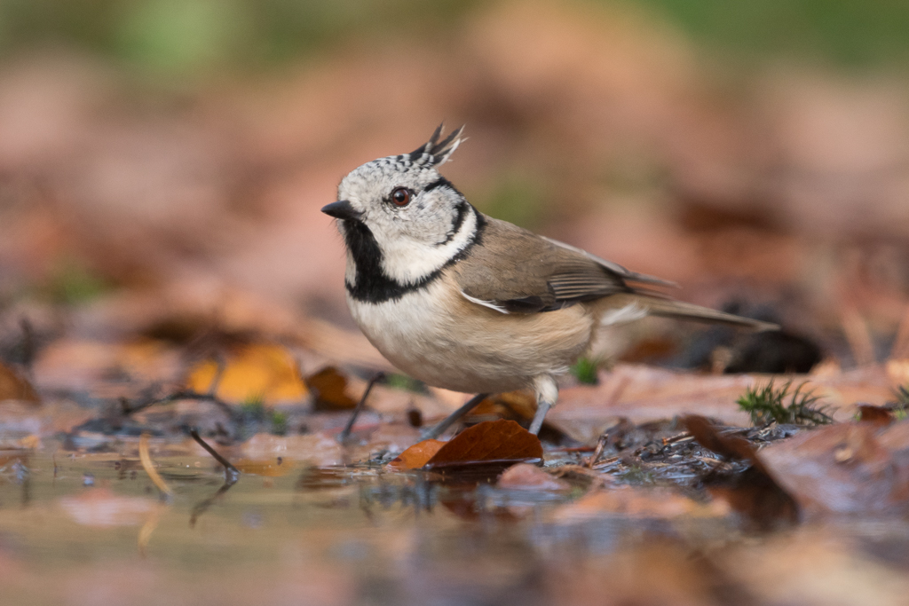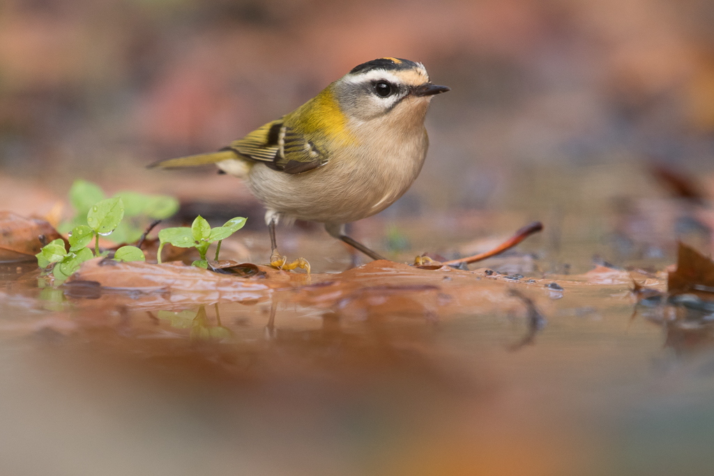 Na een lange tijd weer eens de boshut opgezocht. Omdat het vijvertje droog stond en ik pas net weer het voer had bijgevuld, ging ik er met niet al te hoge verwachtingen naar toe. Bij aankomst heb ik eerst de vijver bijgevuld met water, zodat de vogels weer konden drinken en badderen. Al snel kwamen de eerste vogels en het bleef de hele ochtend druk. In de struik aan de rechterkant zag ik heel even een klein zangertje. Wat zou het zijn? Ik hoopte op een vuurgoudhaan, omdat dit schitterende vogeltjes zijn, die ik nog eerder goed heb kunnen fotograferen. Ze zijn heel klein, maar met prachtige kleuren en details. Even later liet de vogel zich weer zien en het was inderdaad een vuurgoudhaan. Beweeglijk als ze zijn, valt het niet mee om ze goed voor de lens te krijgen. In het Engels heet de vuurgoudhaan firecrest. Wat een prachtige naam! Het klinkt als ze soort vriendelijke melding voor een brandalarm. Gelukkig was de firecrest ook geïntereseerd in het vijvertje, dus bleef hij terug komen, zodat het me lukte om hem vast te leggen. Maar daar bleef het niet bij, want ook het gewone goudhaantje, een kuifmees en een paartje goudvink kwamen langs bij de vijver. Ik prijs me weer gelukkig dat ik nog steeds de beschikking heb over een boshut op een mooi plekje op de Veluwe.