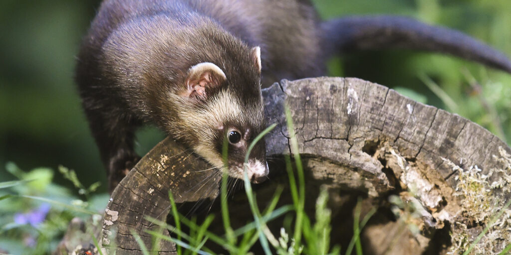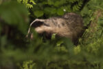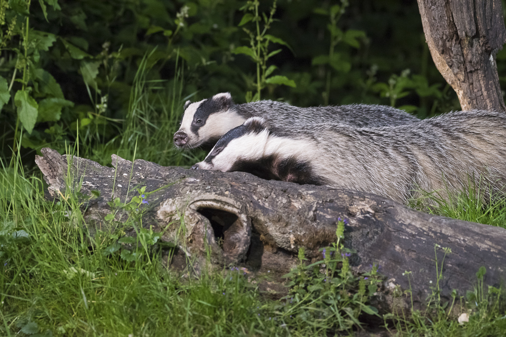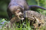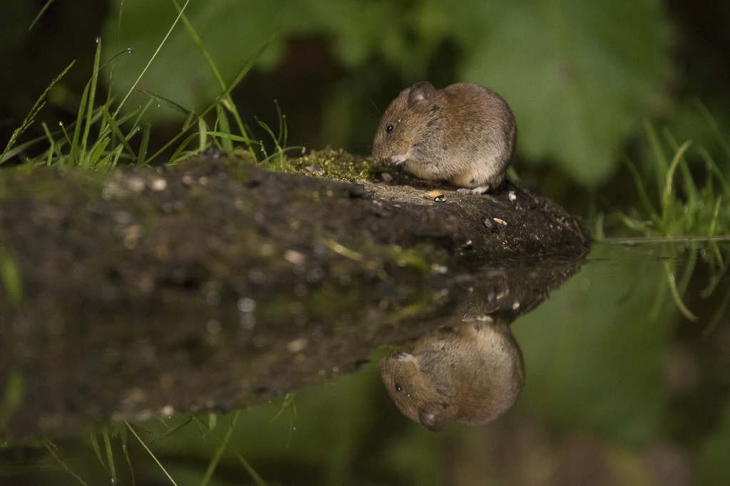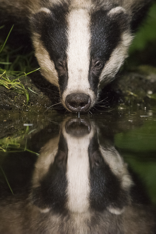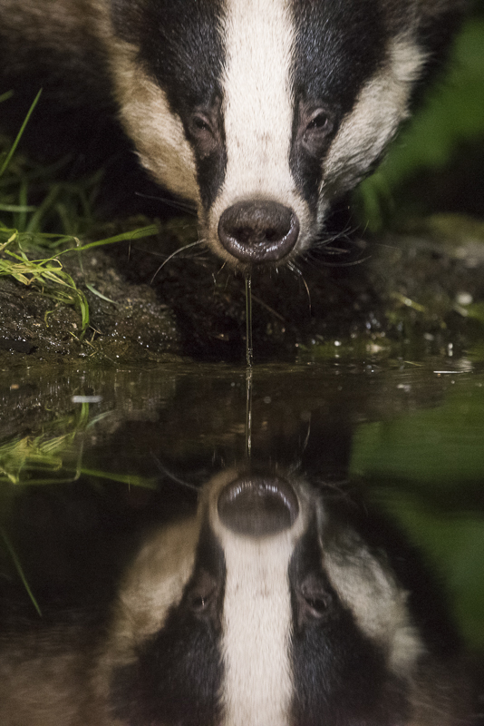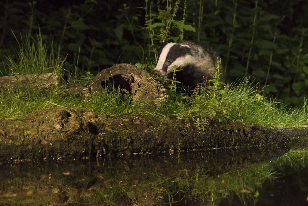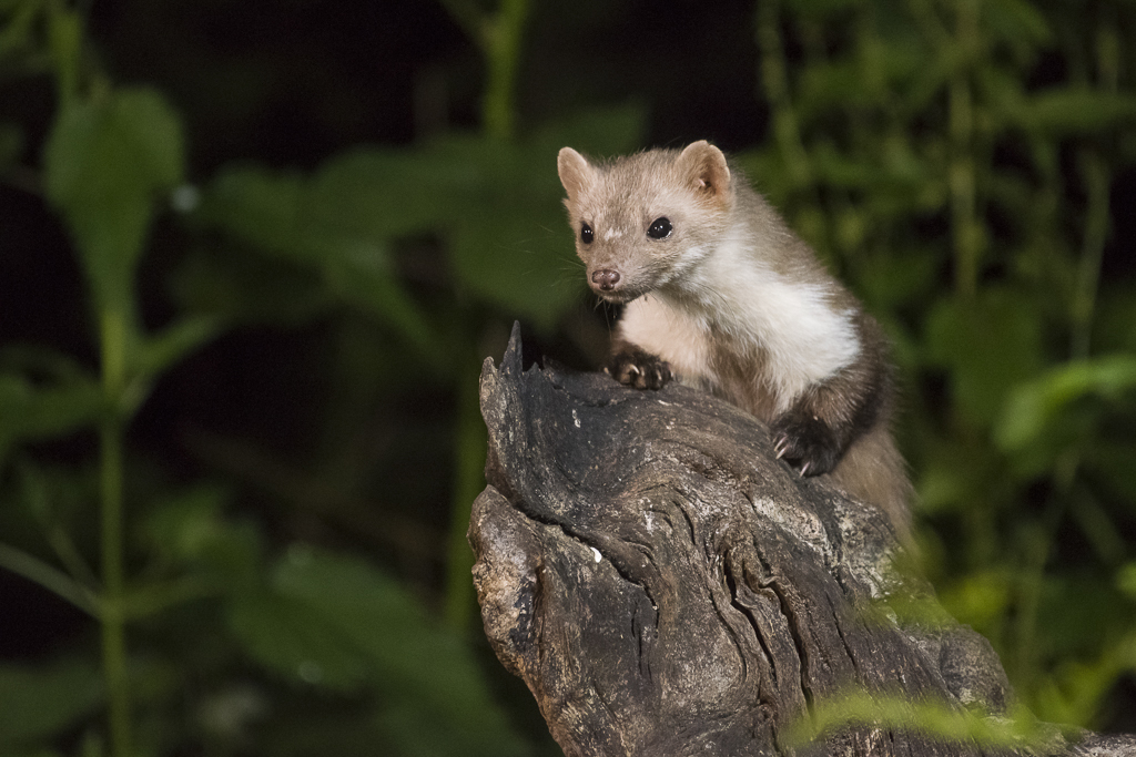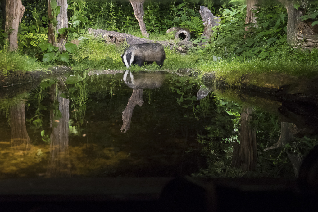 Om half 10 kwam Edo langs om allerlei ‘lekkers’ neer te leggen voor de marterachtigen. Wat zaden, noten, pindakaas op de stronken en wat eendagskuikens verstopt in een stronk. Nadat Edo weer was vertrokken, kwam de bunzing als een raket tevoorschijn. Waarschjinlijk zat hij al te wachten in de struiken… Het viel niet mee om hem vast te leggen, omdat hij heen en weer schoot voor de hut. Nog net gelukt om één scherpe foto te maken. Maar wel heel gaaf om deze marterachtige die zich maar zelden laat zien, zo mooi dichtbij te hebben. Dat was een goed begin. In afwachting van nog meer moois ploefde openeens het licht uit. Ook de koelkast ging uit, dus dit betekende dat de stroom eraf was. Gelukkig was het nog niet heel laat, dus toch maar Edo gebeld. Hij kwam er direct aan en na wat gepruts met verlengsnoeren deed na een half uurtje het licht het weer. Take two. Nadat we ons vermaakt hadden met wat bruine ratten, begon er wat te schuifelen in de struiken. Ik vermoedde al dat het dassen waren en zo ja hoor, na een poosje kwamen er maar liefst drie dassen tevoorschijn die zich uitgebreid tegoed gingen doen aan het dagelijkse tafeltje dekje. Ze namen de tijd en verdwenen na een uurtje weer in de struiken. Nog wat later kwam ook ineens een steenmarter tevoorschijn, die ging snoepen van de pindakaas op de stronken. Het was inmiddels half 2, dus werd het tijd om wat te gaan slapen. In de hut is een stapelbed en mijn vriend Peter had een matje meegenomen, zodat hij ook kon slapen (verschil moet er zijn 🙂).