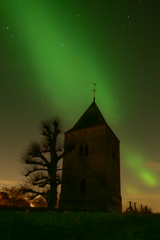 Toen ik maandag al in bed lag, zag ik nog net een berichtje langskomen op Facebook, dat er op dat moment noorderlicht werd gezien. Na een blik uit het raam wist ik genoeg. Het was al duidelijk te zien en zat ook behoorlijk hoog in de lucht. Snel de kleren aangetrokken en naar de dijk om wat foto’s te maken. Het was ongekend. In Nederland zag je het hooguit een beetje aan de horizon, maar dit waren Noorse toestanden.