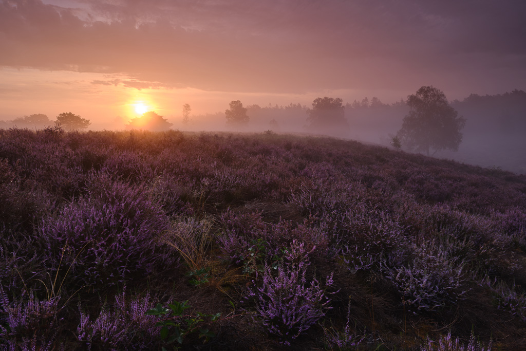 Geloof het of niet, maar op een willekeurige ochtend in augustus is het rond zonsopkomst druk op de Posbank. Veel landschapsfotografen zijn op zoek naar de paarse heide. Je zou denken dat ze die inmiddels gevonden hebben, maar gek genoeg blijven ze maar komen. Voor je het weet sta je in iemands beeld of erger…