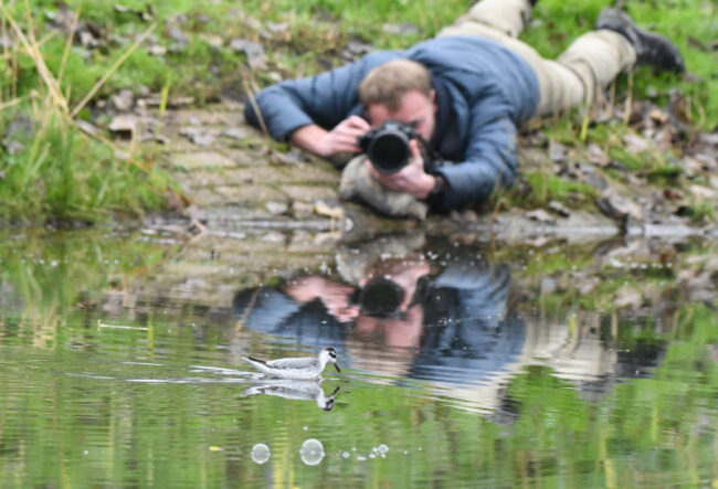 Een wat? Ja, een rosse franjepoot. Het beestje voelt zich kennelijk thuis in een vaart langs de A12 bij Ede. Vogelaars en vogelfotografen voelen zich er ook thuis en komen er in grote getale op af. Wat het leuke is aan een franjepoot dat ze vaak niet schuw zijn, omdat ze in het hoge Noorden…